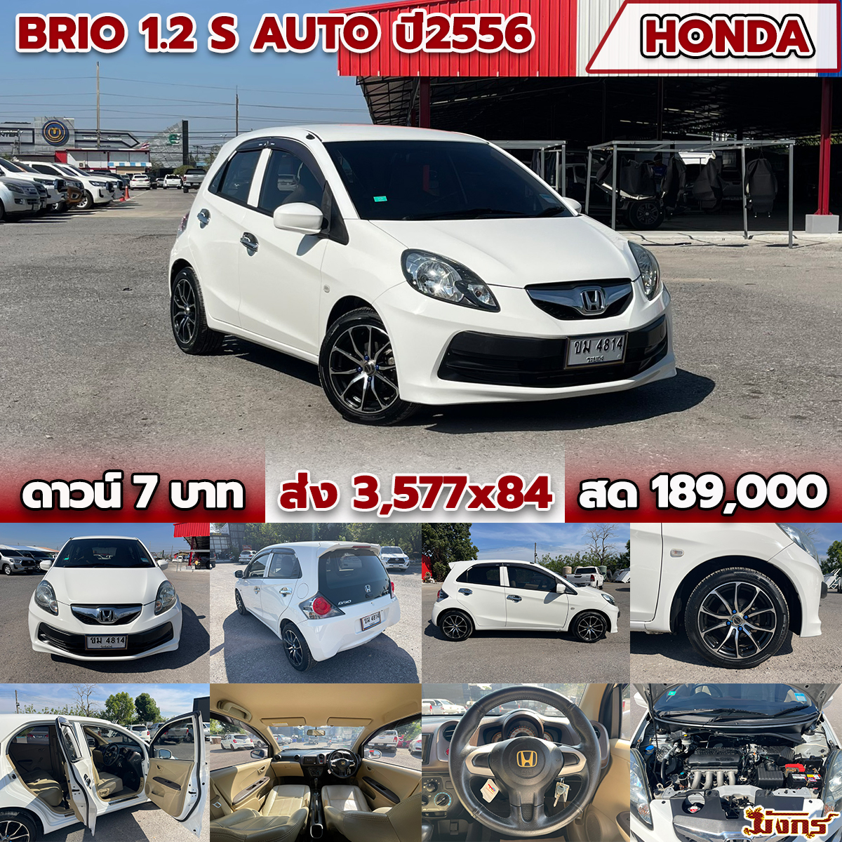 20/10/2025 | SIAกทม.ถึง 22/10/68 ตรวจแล้ว 24/10/68 ต้อง | ดาวน์ 7 บาท ส่ง 3,577x84 สด 189,000 (T.12) ผลต่าง KKP:-9000; ผลต่าง KA:-99000; ผลต่าง TTB:-24000; | ขม 4814 ระยอง // ขพ 4647 อุดร (ออกใบคู่มือ กรณีรายการต่อเต็ม) | เก๋ง | HONDA Brio 1.2 S Auto สีขาว ปี56 *คัดใบคู่มือทะเบียนใหม่ กรณีรายการต่อเต็ม เกียร์ออโต้ ข้อมูลการจัด CIMBพี่แป๋ม 10000 บาท/งวด 3,781x72 162000 เซลล์ทีป มังกร 15 ไร่ *อนุมัติ3/12/68 25/11/68มัดจำ500สด10.58(15ไร่)นางสาวเบ็ญจมาตร สุสดี0983510085นายหน้าแนะนำ/มีนน/เซลล์ทีป(ย้ายคัน1/12/68(10.54) | มังกร 15 ไร่ | อนุมัติจัดแล้ว | ได้รับแล้ว 03/11/2568 | |