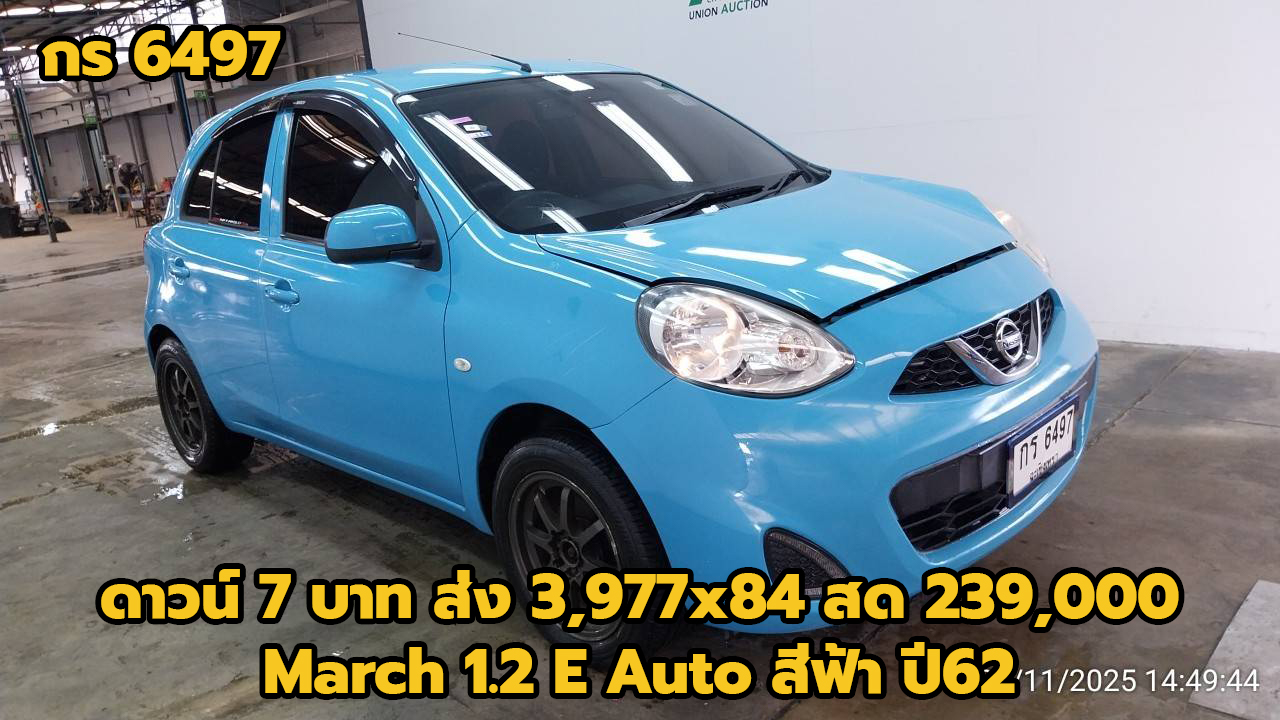 06/11/2025 | สหะเหม่งจ๋าย.ถึง 11/11/68 ตรวจแล้ว 12/11/68 ทัต | ดาวน์ 7 บาท ส่ง 2,977x84 สด 169,000 (T.7.9) ผลต่าง KKP:-38000; ผลต่าง KA:-74000; ผลต่าง TTB:-54000; | กร 1718 ภูเก็ต | เก๋ง | NISSAN March 1.2 V Auto สีเขียว ปี56 (รถ No Vat) เกียร์ออโต้ | ศูนย์เปลี่ยนอะไหล่ | เข้าใหม่ ทำสีรอซ่อม ร้านอ้วนปากดง 26/11/68 กลับศนย์ 27/11/68 ส่งอู่ช่างน้อย 5,500 27/11/68 รออะไหล่ 11/12/68 | ได้รับแล้ว 21/11/2568 | |