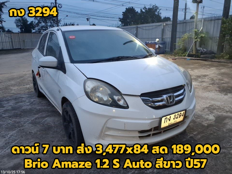 17/11/2025 | แอปเปิ้ลปราจีนบุรี.ถึง 22/11/68 ตรวจแล้ว 27/11/68 ตอ | ดาวน์ 7 บาท ส่ง 3,477x84 สด 189,000 (T.11) ผลต่าง KKP:-21500; ผลต่าง KA:-79000; ผลต่าง TTB:-44000; | กง 3294 สระแก้ว | เก๋ง | HONDA Brio Amaze 1.2 S Auto สีขาว ปี57 เกียร์ออโต้ | ศูนย์อู่สีมังกร | เข้าใหม่ ทำสีรอซ่อม ส่งอู่สีมังกร 11/12/68 | ได้รับแล้ว 27/11/2568 | |