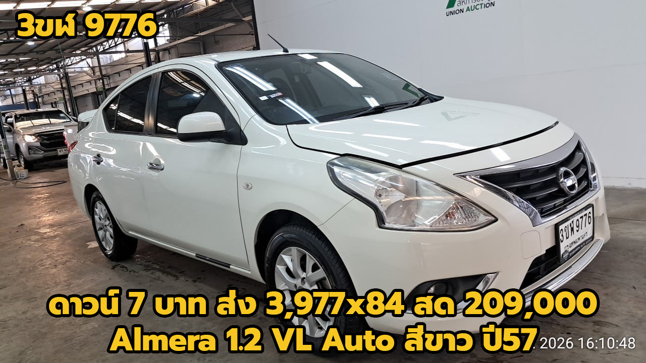 19/02/2026 | สหะเหม่งจ๋าย.ถึง 2/3/69 ตรวจแล้ว 6/3/69 ต้อง | ดาวน์ 7 บาท ส่ง 3,977x84 สด 209,000 (T.12) ผลต่าง KKP:-76000; ผลต่าง KA:-84000; ผลต่าง TTB:-69000; | 3ขฬ 9776 กทม. | เก๋ง | NISSAN Almera 1.2 VL Auto สีขาว ปี57 เกียร์ออโต้ | ศูนย์อู่สีมังกร | เข้าใหม่ ทำสีรอซ่อม ส่งอู่สีมังกร 27/3/69 | ได้รับแล้ว 12/03/2569 | |