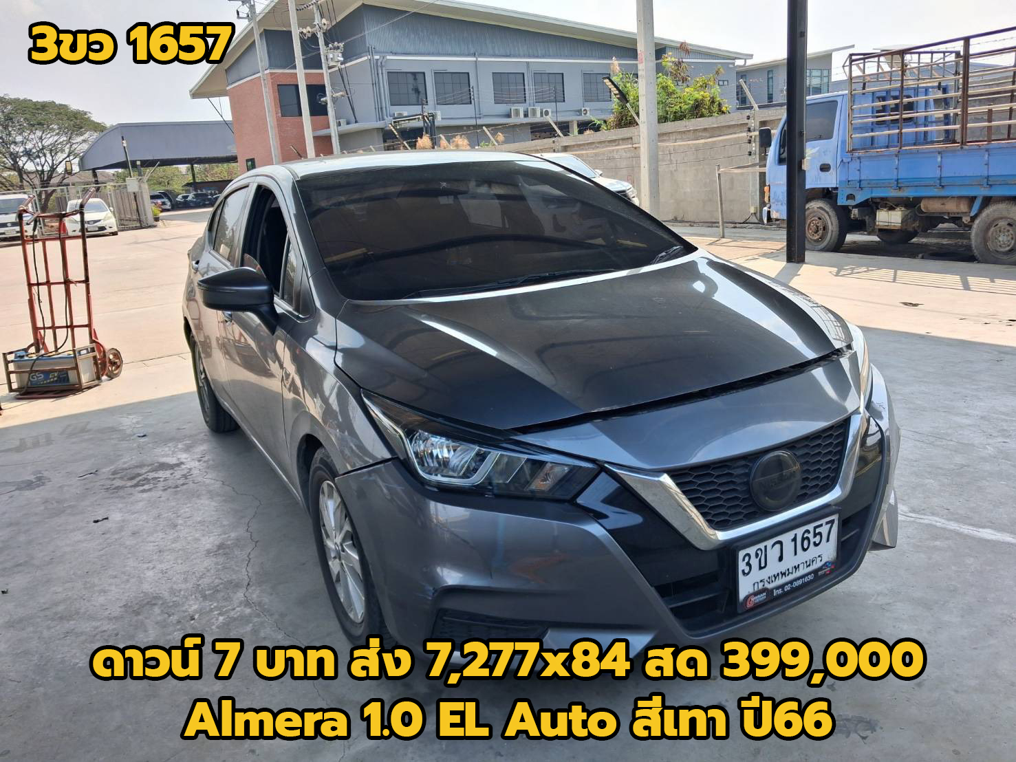 26/03/2026 | หน้าร้าน15ไร่.ตรวจแล้ว 23/3/69 ขวัญ | ดาวน์ 7 บาท ส่ง 7,277x84 สด 399,000 (T.27) ผลต่าง KKP:-68000; ผลต่าง KA:-14000; ผลต่าง TTB:-19000; | 1ขบ 8601 กทม. | เก๋ง | NISSAN Almera 1.0 VL Turbo Auto สีเทา ปี64 (รถ No Vat) เกียร์ออโต้ | อู่นอก | เข้าใหม่ ทำสีรอซ่อม ร้านอ้วนหนองสำโรง 3/4/69 | ||