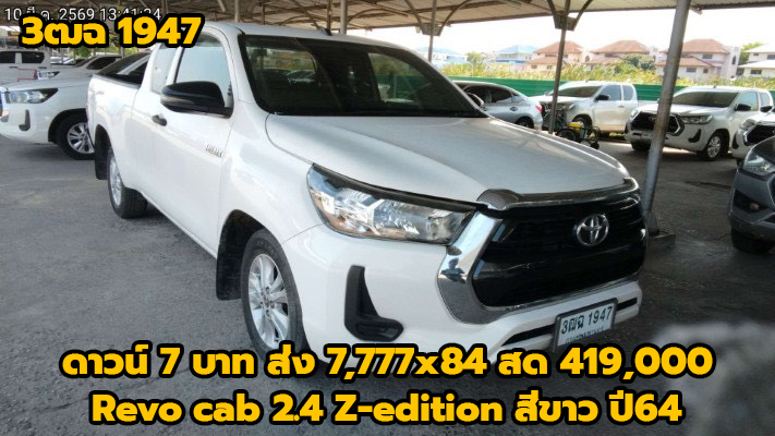 13/03/2026 | SIAกทม.ถึง 20/3/69 ตรวจแล้ว 25/3/69 พี่หนึ่ง | ดาวน์ 7 บาท ส่ง 7,777x84 สด 419,000 (T.32) ผลต่าง KKP:-54000; ผลต่าง KA:-9000; ผลต่าง TTB:-9000; | 3ฒฉ 1947 กทม | กระบะแค็ป | TOYOTA Revo cab 2.4 Z-edition สีขาว ปี64 เกียร์ธรรมดา | ศูนย์เปลี่ยนอะไหล่ | เข้าใหม่ ทำสีรอซ่อม รออะไหล่ 1/4/69 | ||