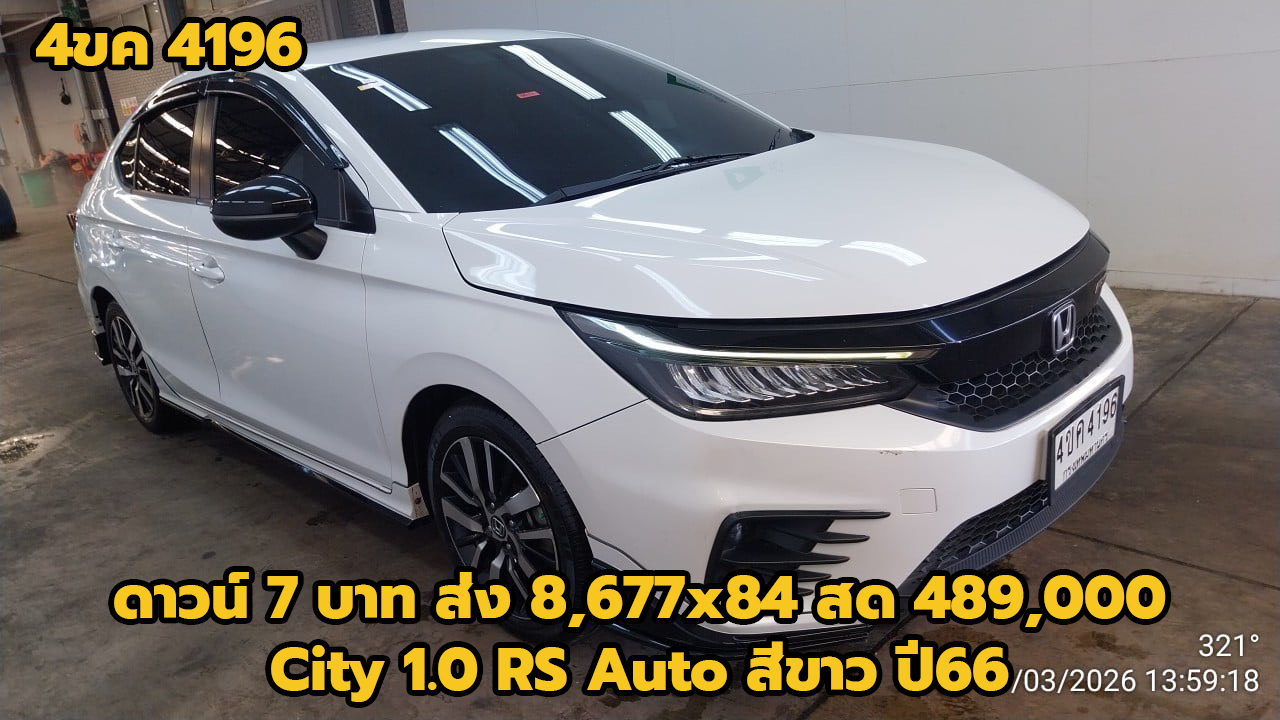 19/03/2026 | สหะเหม่งจ๋าย.ถึง 24/3/69 ตรวจแล้ว 26/3/69 ทัต | ดาวน์ 7 บาท ส่ง 8,677x84 สด 489,000 (T.38) ผลต่าง KKP:-2000; ผลต่าง KA:211000; ผลต่าง TTB:106000; | 4ขค 4196 กทม. | เก๋ง | HONDA City 1.0 RS Auto สีขาว ปี66*รถ KA เกียร์ออโต้ | ศูนย์อู่สีมังกร | เข้าใหม่ ทำสีรอซ่อม ส่งอู่สีมังกร 2/4/69 | ||
