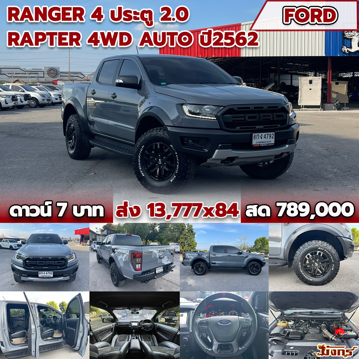 08/11/2025 | สหะเหม่งจ๋าย.ถึง 14/11/68 ตรวจแล้ว 14/11/68 ทัต | ดาวน์ 7 บาท ส่ง 13,777x84 สด 789,000 (T.69) ผลต่าง KKP:-11000; ผลต่าง KA:46000; ผลต่าง TTB:61000; | 8กง 4792 กทม | 4 ประตู | FORD Ranger 4 ประตู 2.0 Rapter 4WD Auto สีเทา ปี62 *รถ KA เกียร์ออโต้ | นาดี | เข้าใหม่ | ได้รับแล้ว 25/11/2568 | |