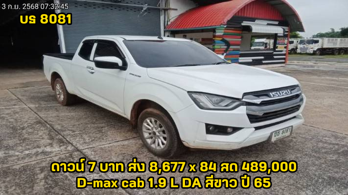 03/11/2025 | SIA กทม.ถึง 9/11/68 ตรวจแล้ว 12/11/68 ทัต | ดาวน์ 7 บาท ส่ง 8,677x84 สด 489,000 (T.36) ผลต่าง KKP:-82500; ผลต่าง KA:-9000; ผลต่าง TTB:-9000; | บธ 8081 หนองบังลำภู | กระบะแค็ป | ISUZU D-max cab 1.9 L DA สีขาว ปี 65 เกียร์ธรรมดา | ศูนย์เปลี่ยนอะไหล่ | เข้าใหม่ ทำสีรอซ่อม ส่งอู่ช่างน้อย * 5,000 25/11/68 รออะไหล่ 12/12/68 | ได้รับแล้ว 14/11/2568 | |