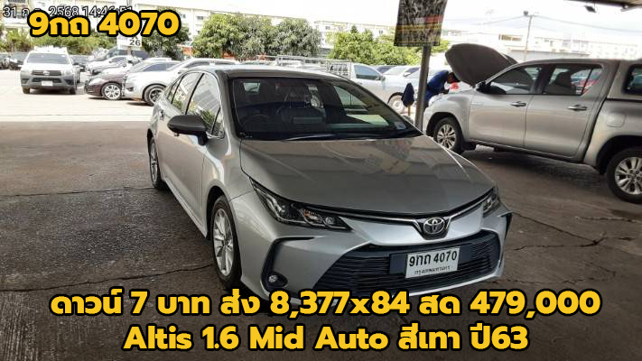 17/09/2025 | SIAกทม.ถึง 22/9/68 ตรวจแล้ว 23/9/68 พี่หนึ่ง | ดาวน์ 7 บาท ส่ง 8,377x84 สด 479,000 (T.39) ผลต่าง KKP:-36500; ผลต่าง KA:-39000; ผลต่าง TTB:1000; | 9กถ 4070 กทม. // ขพ 4700 อุดร | เก๋ง | TOYOTA Altis 1.6 Mid Auto สีเทา ปี63 เกียร์ออโต้ | อู่นอก | เข้าใหม่ | ได้รับแล้ว 03/10/2568 | |