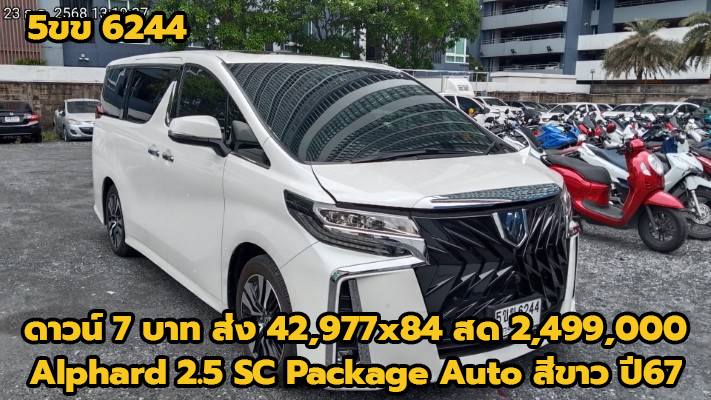20/10/2025 | SIAกทม.ถึง 22/10/68 ตรวจแล้ว 24/10/68 พี่หนึ่ง | ดาวน์ 7 บาท ส่ง 42,977x84 สด 2,499,000 (T.205) ผลต่าง KKP:21000; ผลต่าง KA:706000; ผลต่าง TTB:601000; | 5ขข 6244 กทม | รถตู้ | TOYOTA Alphard 2.5 SC Package Auto สีขาว ปี67 เกียร์ออโต้ | นาดี | เข้าใหม่ | ได้รับแล้ว 03/11/2568 | |