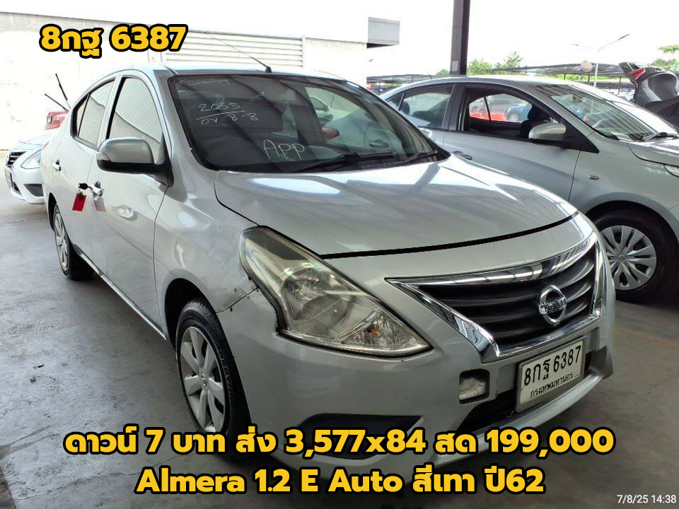 08/08/2025 | แอปเปิ้ลติวานนท์.ถึง 17/8/68 ตรวจแล้ว 11/9/68 พี่หนึ่ง | ดาวน์ 7 บาท ส่ง 3,577x84 สด 199,000 (T.12) ผลต่าง KKP:19500; ผลต่าง KA:-6000; ผลต่าง TTB:16000; | 8กฐ 6387 กทม. // ขพ 3027 อุดร | เก๋ง | NISSAN Almera 1.2 E Auto สีเทา ปี62 *โอน2ต่อ/รถเคยติดแก๊สมาลงเล่มแล้วแต่ไม่มีถังแก๊ส เกียร์ออโต้ | มังกร 15 ไร่ | เข้าใหม่ | ได้รับแล้ว 01/10/2568 | |
