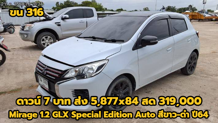 11/08/2025 | SIAกทม.ถึง 18/8/68 ตรวจแล้ว 25/8/68 ตอ | ดาวน์ 7 บาท ส่ง 5,877x84 สด 319,000 (T.21) ผลต่าง KKP:-59000; ผลต่าง KA:-58000; ผลต่าง TTB:-14000; | ขน 316 ระยอง | เก๋ง | MITSUBISHI Mirage 1.2 GLX Special Edition Auto สีขาว-ดำ ปี64 (รถ No Vat) เกียร์ออโต้ | นาดี | เข้าใหม่ | ได้รับแล้ว 27/08/2568 | |