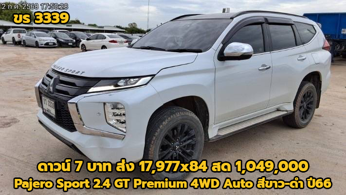 16/08/2025 | SIA กทม.ถึง 21/8/68 ตรวจแล้ว 22/8/68 พี่หนึ่ง | ดาวน์ 7 บาท ส่ง 17,977x84 สด 1,049,000 (T.93) ผลต่าง KKP:46000; ผลต่าง KA:205000; ผลต่าง TTB:181000; | ขร 3339 ระยอง // ขพ 2674 อุดร | แวน 7 ที่นั่ง | MITSUBISHI Pajero Sport 2.4 GT Premium 4WD Auto สีขาว-ดำ ปี66 เกียร์ออโต้ | ดงลิง | เข้าใหม่ | ได้รับแล้ว 04/09/2568 | |