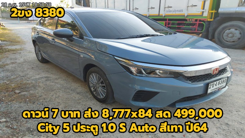 01/04/2024 | SIA กทม.ถึง 8/4/67 ตรวจแล้ว 10/4/67 ต้อง2 | ดาวน์ 7 บาท ส่ง 7,977x84 สด 459,000 (T.42) ผลต่าง KKP:5000; ผลต่าง KA:-49000; ผลต่าง TTB:-24000; | 2ขง 8380 กทม | เก๋ง | HONDA City 5 ประตู 1.0 S Auto สีเทา ปี 64 เกียร์ออโต้ | ขอนแก่น | เข้าใหม่ | ได้รับแล้ว 08/05/2567 | |