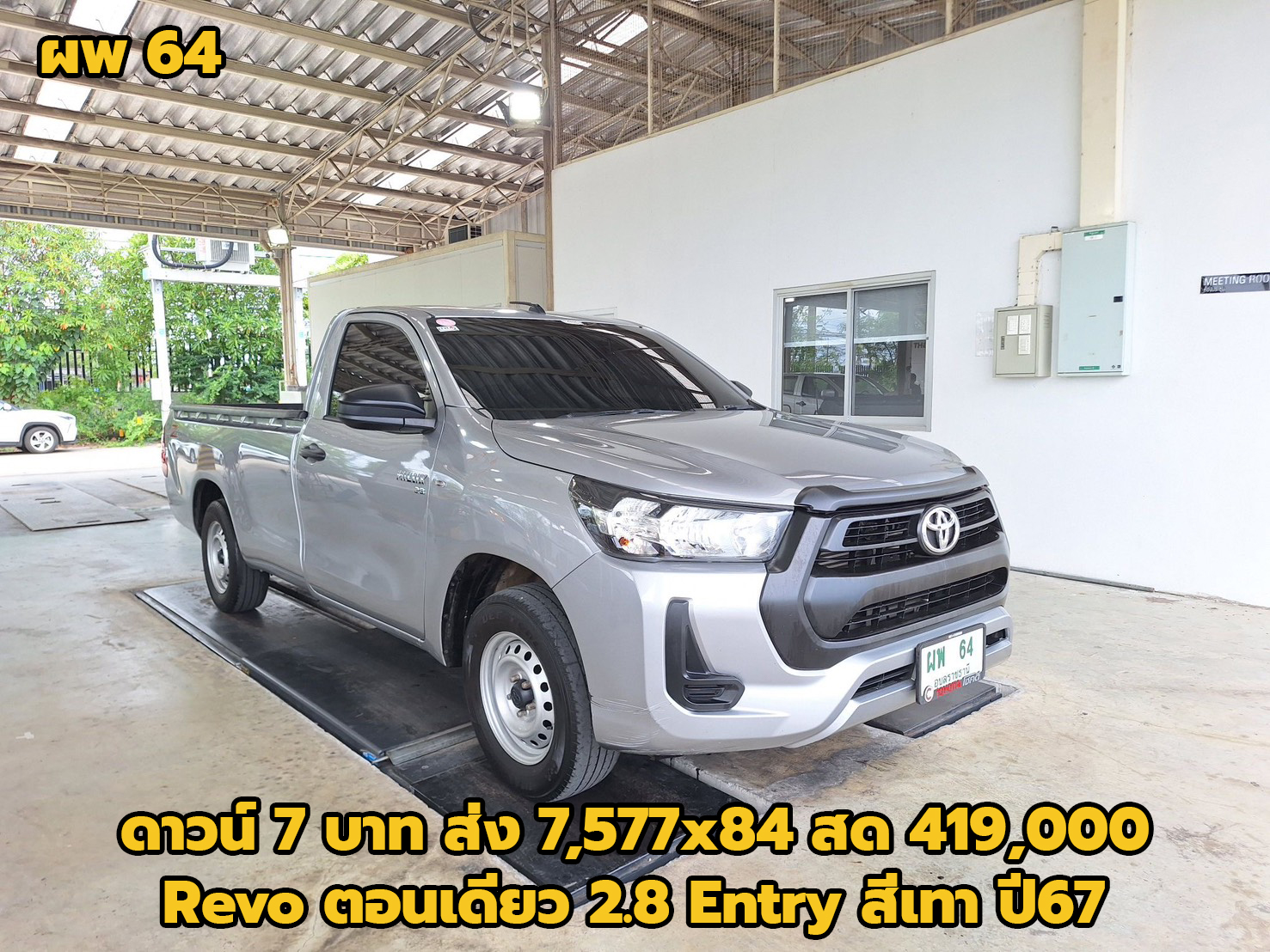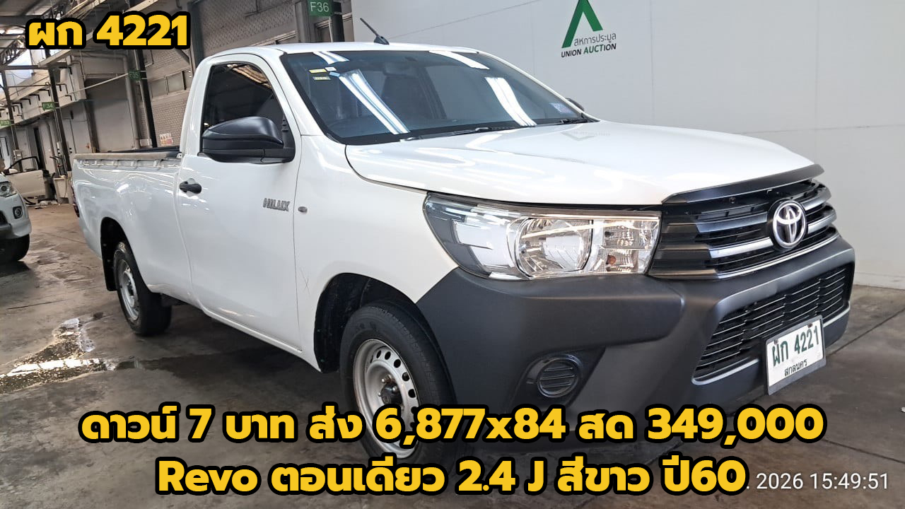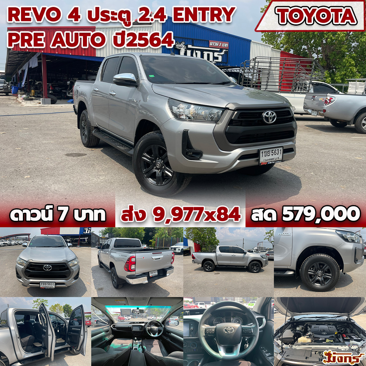 14/03/2026 | Express.ถึง 4/1/69 ตรวจแล้ว 9/1/69 พี่หนึ่ง | ดาวน์ 7 บาท ส่ง 7,577x84 สด 419,000 (T.31) ผลต่าง KKP:-22500; ผลต่าง KA:51000; ผลต่าง TTB:61000; | ผพ 64 อุบลราชธานี (รถเสริมแหนบเปลี่ยนเพลาท้ายลงหลังเล่มแล้ว) | ตอนเดียว | TOYOTA Revo ตอนเดียว 2.8 Entry สีเทา ปี67 เกียร์ธรรมดา ข้อมูลการจอง 14/3/69 14.06 น. มัดจำ 1,000 (รถหรู) นายเอกลักษณ์ วังคำหาญ 092-5149202 ลคเพจ เซลล์เต๋า | มังกร 15 ไร่ | จองแล้ว | ได้รับแล้ว 08/01/2569 | |