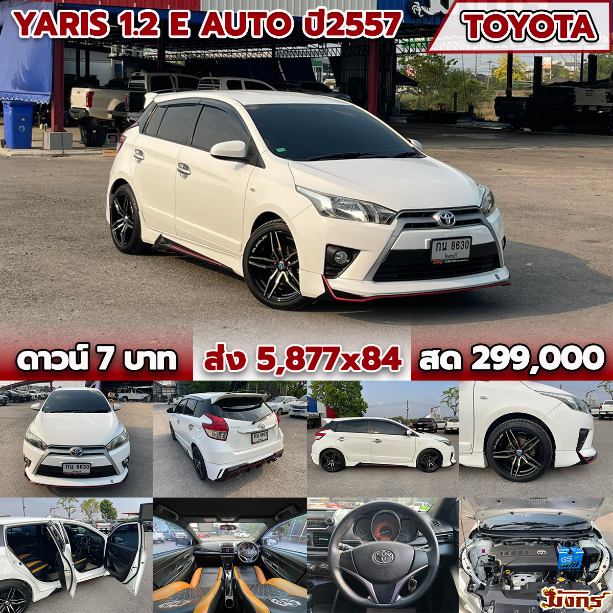 02/04/2026 | Mottoกทม.ถึง 26/2/69 ตรวจแล้ว 2/3/69 พี่หนึ่ง | ดาวน์ 7 บาท ส่ง 5,877x84 สด 299,000 (T.21) ผลต่าง KKP:-115000; ผลต่าง KA:-159000; ผลต่าง TTB:-79000; | กน 8630 จันทบุรี | เก๋ง | TOYOTA Yaris 1.2 E Auto สีขาว ปี57 *มีใบตรวจสภาพรถ เกียร์ออโต้ ข้อมูลการจอง 02/04/69 16:33 นาย สุริยา แพทย์จันลา 098-7198189 โอนจอง 500 ลูกค้าเพจ/เซลล์ริน ( ไอซ์ หนองบัว ) | รถหรู | จองแล้ว | ได้รับแล้ว 03/03/2569 | |