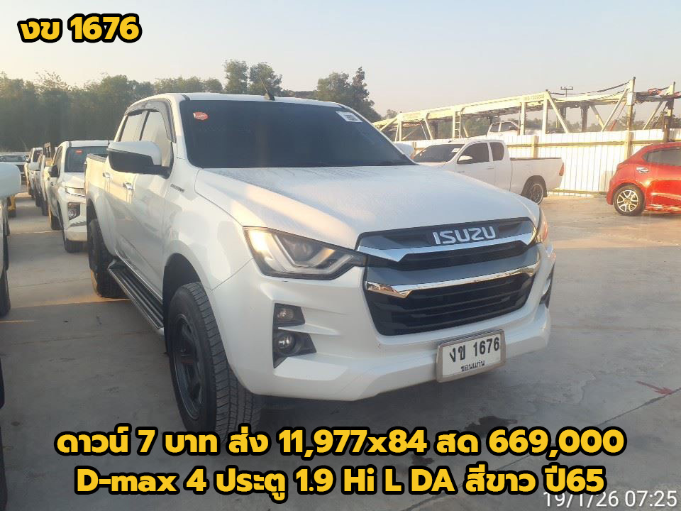 17/03/2026 | แอปเปิ้ลอุดร.ถึง 22/1/69 ตรวจแล้ว 23/1/69 เบนซ์ | ดาวน์ 7 บาท ส่ง 11,977x84 สด 669,000 (T.57) ผลต่าง KKP:-143500; ผลต่าง KA:-54000; ผลต่าง TTB:-19000; | งข 1676 ขอนแก่น (ล้อล้น,ท่อแต่งยังไม่รับรองวิศวะ) | 4 ประตู | ISUZU D-max 4 ประตู 1.9 Hi L DA สีขาว ปี65 เกียร์ธรรมดา ข้อมูลการจอง 17/3/69 16.39 น. มัดจำ 1,000 (รถหรู) น.ส.กัลยรัตน์ มืดจันทร์ 093-1250844 ลคหน้าร้าน เซลล์เต๋า / | รถหรู | จองแล้ว | ได้รับแล้ว 02/02/2569 | |