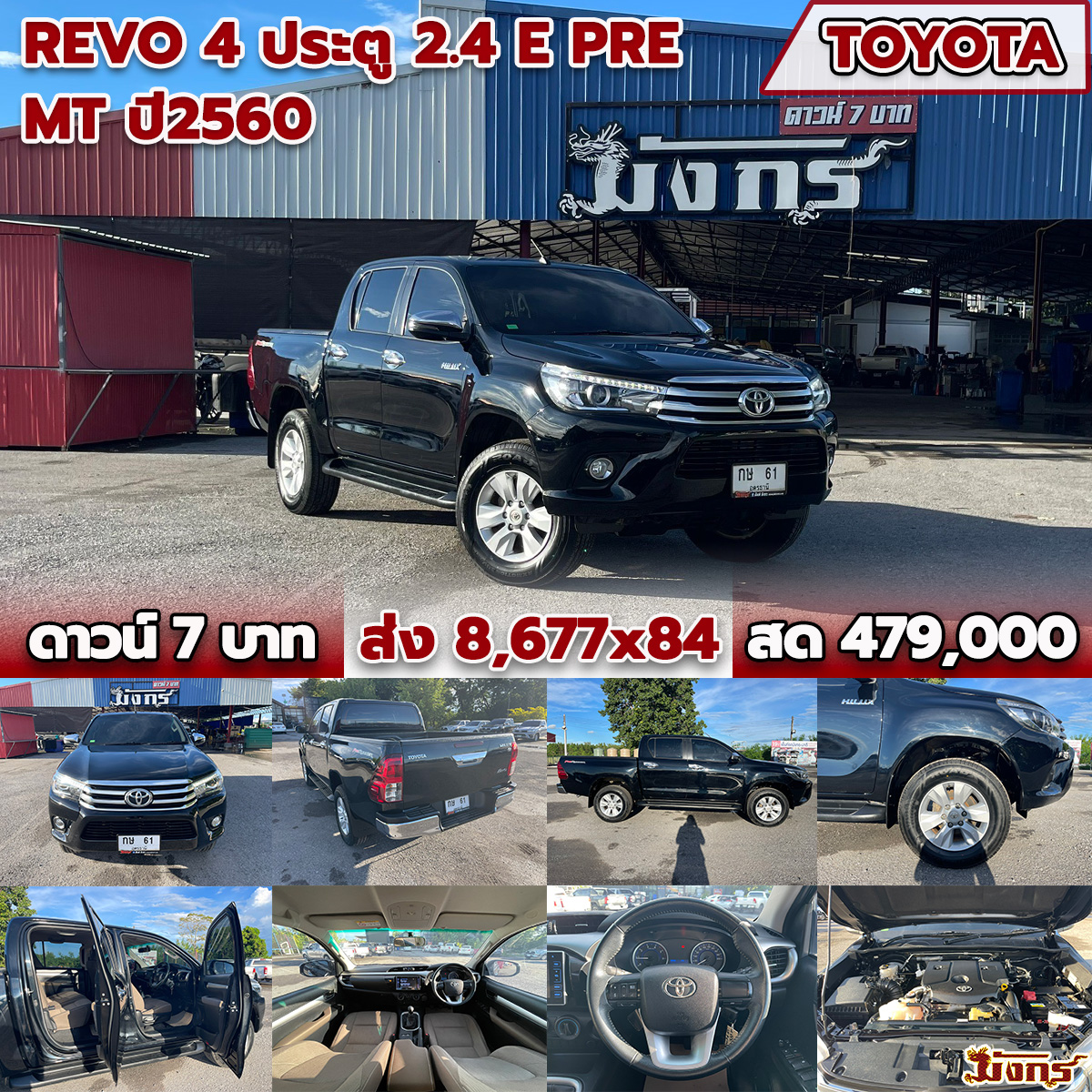 06/12/2025 | Motto กทม.ถึง 6/8/68 ตรวจแล้ว 8/8/68 พี่หนึ่ง | ดาวน์ 7 บาท ส่ง 8,677x84 สด 479,000 (T.39) ผลต่าง KKP:-95000; ผลต่าง KA:-24000; ผลต่าง TTB:21000; | กษ 61 อุดรธานี/ ขท 855 อุดร (ทะเบียนระงับ มาจดใหม่) | 4 ประตู | TOYOTA Revo 4 ประตู 2.4 E Pre สีดำ ปี60 เกียร์ธรรมดา ข้อมูลการจอง 06/12/68 14.50 น. นายอดิเรก ธรรมสาร 084-7668054 รับเงินจอง 500 ลูกค้าหน้าร้านมีค่าแนะนำ/เซลล์ริน (กิ่ง หนองบัว) ตรวจ DLD ได้ NO 6/12/68 | หนองบัวลำภู | จองแล้ว | ได้รับแล้ว 25/08/2568 | |