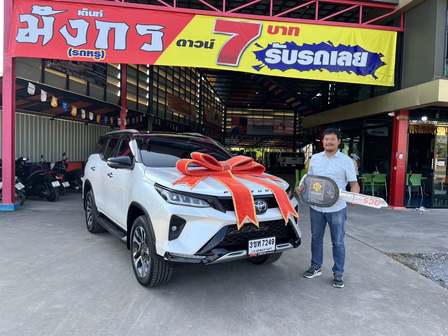 09/01/2026 | หน้าร้านรถหรู.ตรวจแล้ว 12/12/68 ทัต | ดาวน์ 7 บาท ส่ง 19,977x84 สด 1,159,000 (T.90) ผลต่าง KKP:-39000; ผลต่าง KA:141000; ผลต่าง TTB:201000; | 3ขห 7249 กทม (ขพ 6930 อด.) | แวน 7 ที่นั่ง | TOYOTA Fortuner 2.4 Legender 4WD Auto สีขาว-ดำ ปี66 (รถ No Vat) เกียร์ออโต้ ข้อมูลการขาย นายพงศกร คำโสภา 093-2941653 ซื้อ 062-5393553 ภรรยา 061-9572288 พ่อ ดาวน์ 100,000 มีรถ Navara เทิร์น 100,000 ทะเบียน กด 2888 อุดร / แถมเสื้อแขนสั้นขาว แดง น้ำเงิน XL , แขนยาวเขียว ดำ XL / จัด 1,059,000 / ด 5.75% / งวด 18,920x84 มี ew pa 1,999 / MR 3,000 / KA มัคร / ป.1 คุ้มภัย 16,400 / WS 1,000 / ลคหน้าร้าน / มีค่าแนะนำ 10,000 / วันปีใหม่ / น้ำมัน 500 / เซลล์ต๊ะ / นุ๊ก (รถหรู) | รถหรู | ขายแล้ว | ส่งเล่มแล้วยกเลิกส่งเล่มจ่ายแล้วยกเลิกการจ่าย | ได้รับแล้ว 12/01/2569 |