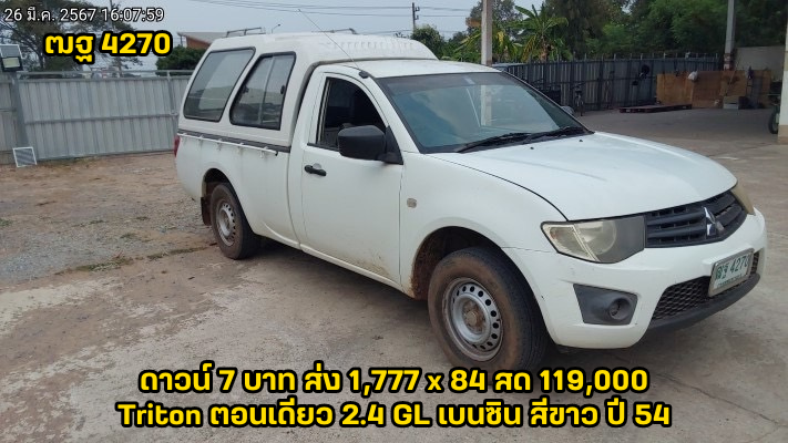11/10/2024 | SIA กทม.ถึง 1/6/67 ตรวจแล้ว 13/6/67 พี่หนึ่ง | ดาวน์ 7 บาท ส่ง 1,777x84 สด 119,000 (ขายตัดสด 65,000) (T.4.9) ผลต่าง KA:-29000; ผลต่าง TTB:-14000; | ฒฐ 4270 กทม. // ผม 5950 อุดร (รถติดตั้งแก๊ส) | ตอนเดียว | MITSUBISHI Triton ตอนเดียว 2.4 GL เบนซิน สีขาว ปี 54 (รถ No Vat) เกียร์ธรรมดา ข้อมูลการขาย ฝากขายสหะอุดร เงินเข้า11/10/67 38,000บาท | อู่นอก | ขายแล้ว | ส่งเล่มแล้วยกเลิกส่งเล่มจ่ายแล้วยกเลิกการจ่าย | ได้รับแล้ว 17/06/2567 |