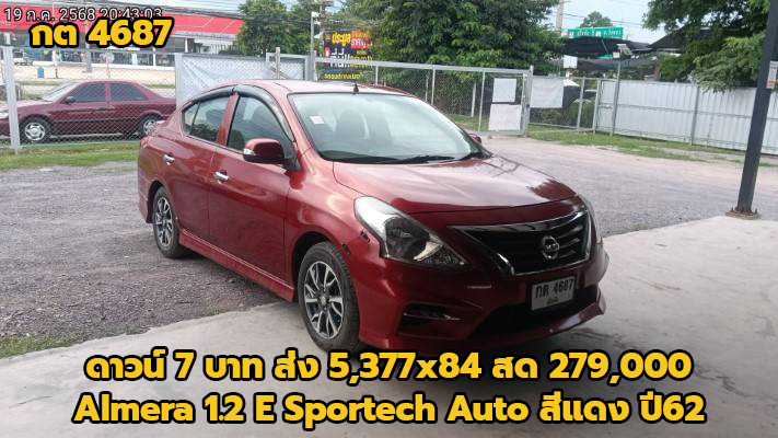 10/10/2025 | SIAกทม.ถึง 14/8/68 ตรวจแล้ว 25/8/68 บีม | ดาวน์ 7 บาท ส่ง 5,377x84 สด 279,000 (T.18) ผลต่าง KKP:-24500; ผลต่าง KA:-72000; ผลต่าง TTB:-14000; | กต 4687 สุโขทัย // ขพ 3621 อุดร | เก๋ง | NISSAN Almera 1.2 E Sportech Auto สีแดง ปี62 (รถโดนใจ) เกียร์ออโต้ ข้อมูลการขาย น.ส.ธัญวรัตน์ สิทธิมงคล 097-3405948 ซื้อ 093-7387047 แฟน 080-5854641 แม่ ดาวน์ 14,000 / แถมน้ำหอม blue dragon / จัด 247,000 / ด 7.85% / งวด 5,656x72 / MR 2,000 / TTB ต๋อง / WS 3,000 / น้ำมัน 500 / ลคหน้าร้าน / เซลล์ป้อม / นุ๊ก (รถหรู) | รถหรู | ขายแล้ว ทำสีรอซ่อม ร้นอ้วนหนองสำโรง 27/8/68 กลับศนูย์ 29/8/68 ร้านอ้วนปากดง 29/8/68 กลับศูนย์ 2/9/68 อู่สีมังกร10/9/68 อู่สีมังกร11/9/68 รออะไหล่ 19/9/68 ส่งแก้ฟิล์มร้านอ้วนปากดง 29/9/68 ร้านอ้วนปากดง 29/9/68 | ส่งเล่มแล้วยกเลิกส่งเล่มจ่ายแล้วยกเลิกการจ่าย | ได้รับแล้ว 23/08/2568 |