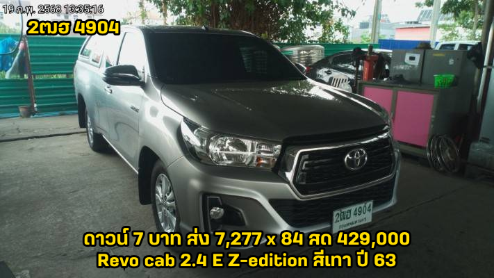 25/09/2025 | SIAกทม.ถึง 22/4/68 ตรวจแล้ว 24/4/68 พี่หนึ่ง | ดาวน์ 7 บาท ส่ง 7,577x84 สด 419,000 (T.31) ผลต่าง KKP:-43000; ผลต่าง KA:-7000; ผลต่าง TTB:-9000; | 3ฒฎ 8940 กทม (ผย 2534 อุดรธานี) | กระบะแค็ป | TOYOTA Revo cab 2.4 Z-edition สีขาว ปี64 (ตรวจรถ Schic-KA) เกียร์ธรรมดา ข้อมูลการขาย นาย ประลิชาติ พรมราช 089-225-2475 ดาวน์ 7บาท ยอดจัด 419,000 บาท ดบ. 6.5% ค่างวด 7,766+715=8,481*84 kaอีฟ (คชจ. mr=3,000 บาท ป.2 คุ้มภัย =4,600 บาท นายหน้า 10,000 บาท กันชน 2,250 บาท รวม 19,850) WS=2,900 บาท แถมเสื้อ ดำxl 2 ตัว แขนสั้น **คอมเต็ม 1,500 ** เซลล์ปลาน้อย+แป้งดงลิง นายหน้าออนไลน์ | ดงลิง | ขายแล้ว | ส่งเล่มแล้วยกเลิกส่งเล่มจ่ายแล้วยกเลิกการจ่าย | ได้รับแล้ว 07/05/2568 |