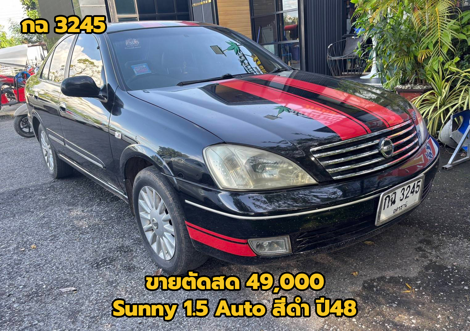 29/09/2025 | หน้าร้านชาแนล | ขายตัดสด 49,000 (T.2.5) | กฉ 3245 อุดรธานี | เก๋ง | NISSAN Sunny 1.5 Auto สีดำ ปี48 (รถ No Vat) เกียร์ออโต้ ข้อมูลการขาย นายชุติเดช ภูโคกค้อย 061-6434564 29/9/68 (มังกรชาแนล) ราคาขาย 40,000 บาท / ดาวน์ 10,000 บาท/ ค่างวด 3,000 บาท / รับรถจ่าย 10,000 บาทอีก 30,000 ผ่อนจ่ายเดือนละ 3,000 x 10 / จ่ายทุกวันที่ 1 ของทุกเดือน**งวดแรก 31/10/68 = 3,000 / เซลล์ยีนส์ / แก้วชาแนล / งวดที่ 2 = 3,000 (3/12/68) | มังกรชาแนล | ขายแล้ว | ส่งเล่มแล้ว | ได้รับแล้ว 03/10/2568 |